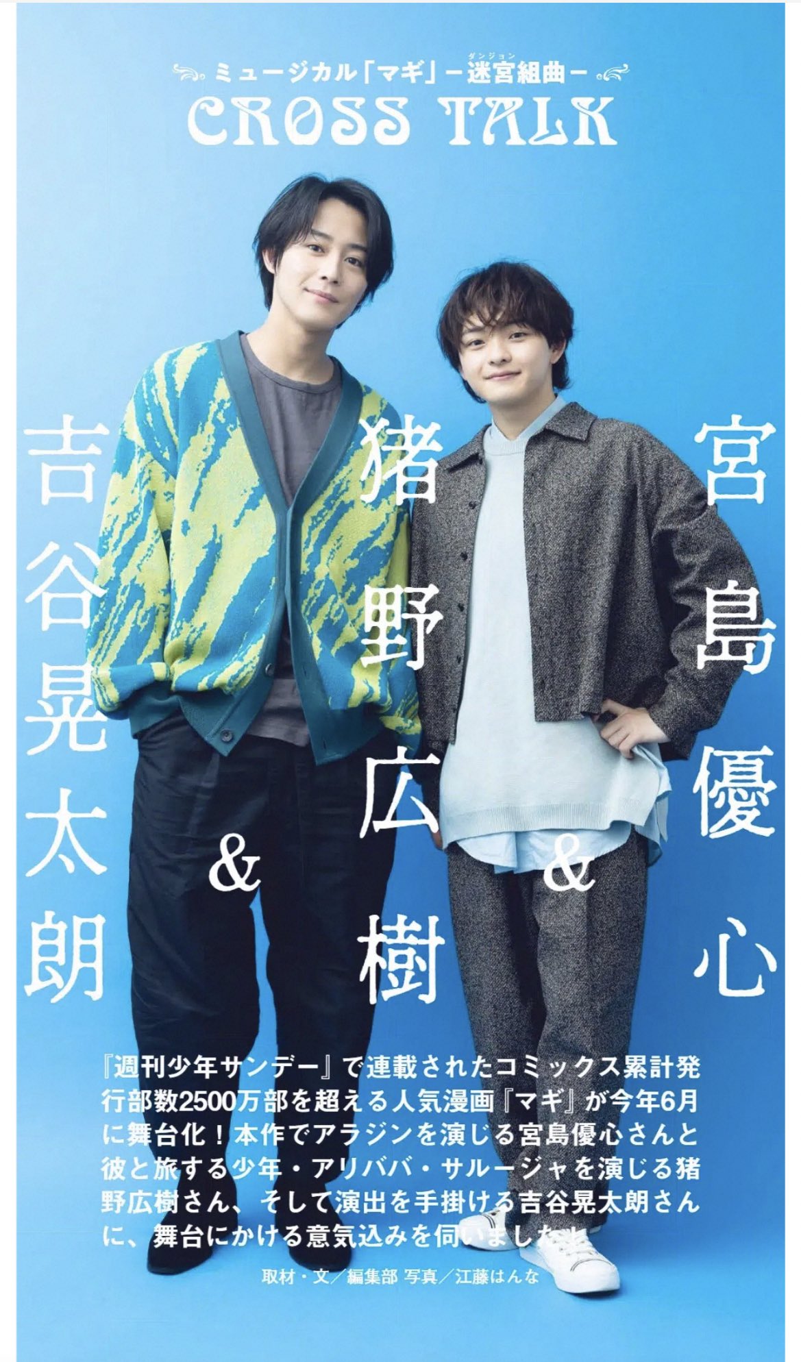 宮島 優宮島 動画宮島 off宮島 stage宮島 -オフ・ステージ-宮島 on宮島 X:宮島 55号宮島 ③第2特集は、ミュージカル「マギ」-迷宮組曲-より、#宮島優心宮島 さん&#猪野広樹宮島 さん宮島 宮島 #吉谷晃太朗宮島 さんの座談会を掲載!宮島 公演へ向けた意気込みや演出の吉谷さんからの二人への期待など、たっぷり語って頂きました♫宮島 (動画宮島 ...宮島 宮島優心主演で『マギ』初ミュージカル化!